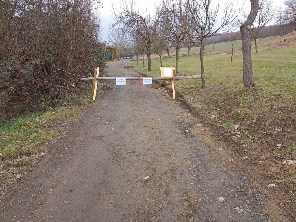 Dne 1.4.2025 jsou nainstalovány sloupky po přeměření v rozmezí 2,1 m pro průjezd . Trámy na okrajích cesty 2,15 m. Takže dohodnutý průjezd po dohodě s majitelem a obcí 2,2 m se nedodržel !!!Pro vjezd hasičů ze zákona je 3-3,5 m minimálně !! Udělejte si občané úsudek sami.