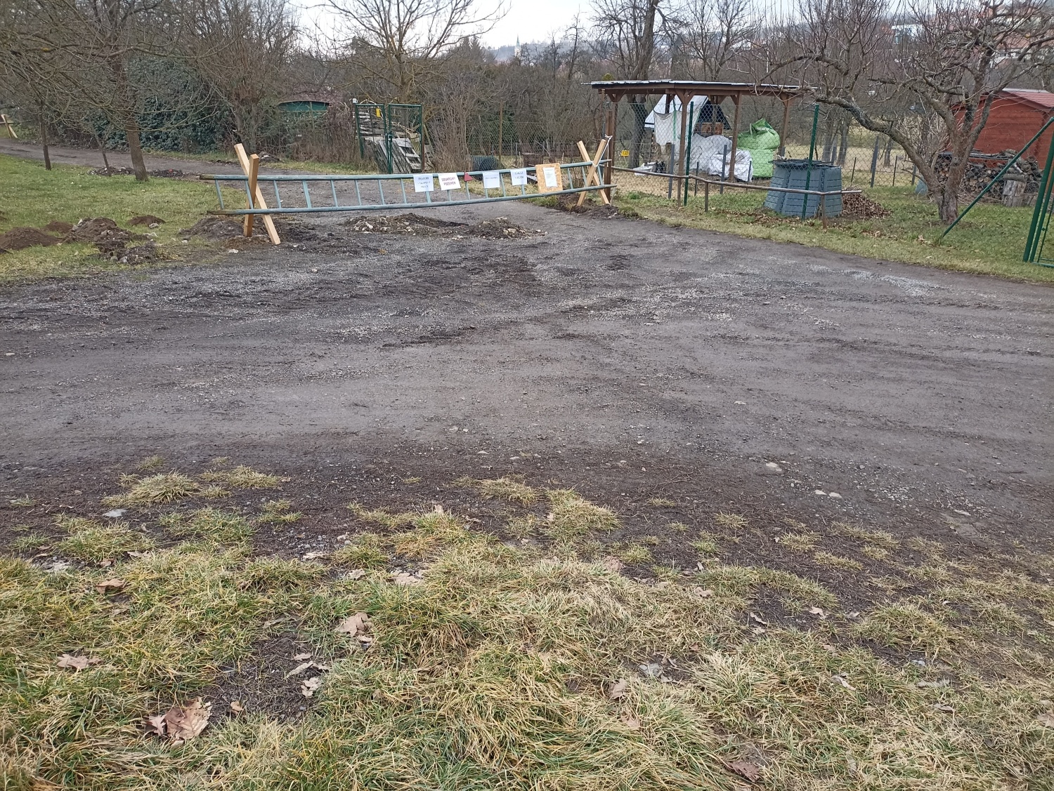 Stávající dřevěné překážky mají zajistit tyto potřeby ještě předtím, než vlastník zrealizuje patřičná zúžení, navíc chrání kolemjdoucí a kolemjedoucí před úrazem z probíhající stavby.