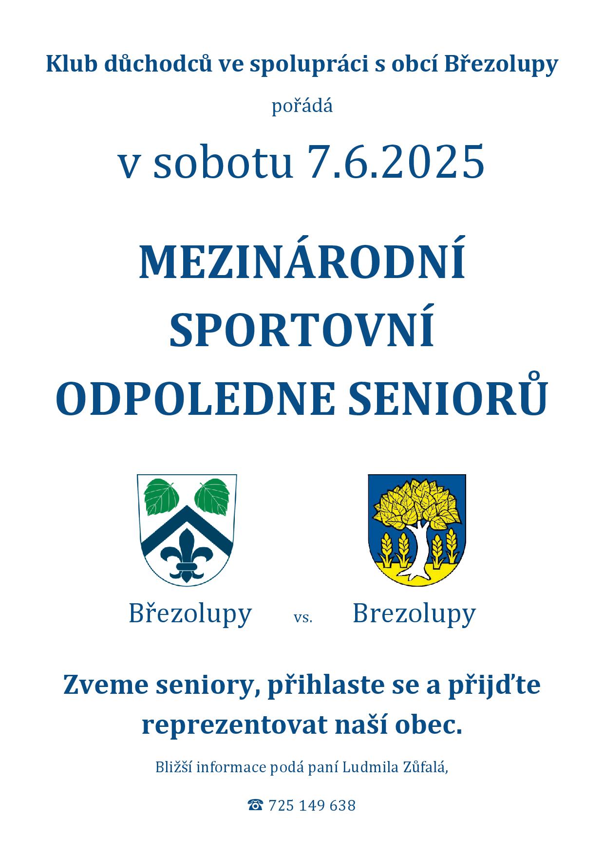 Klub důchodců ve spolupráci s obcí Březolupy pořádá v sobotu 7.6.2025 Mezinárodní sportovní odpoledne seniorů.