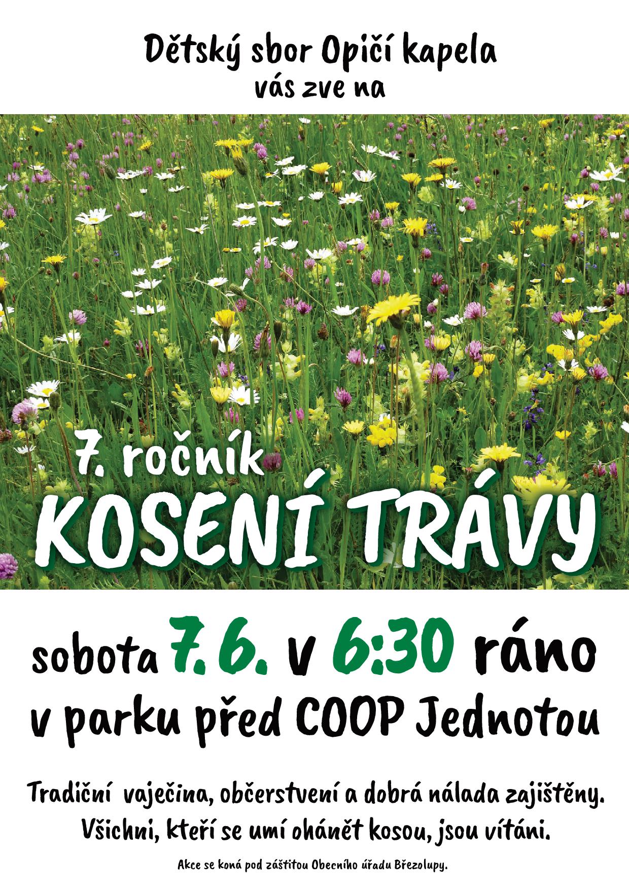 Dětský sbor Opičí kapela vás zve na kosení trávy, které se uskuteční v sobotu 7. června 2025 v 6:30 hodin v parku před Jednotou.