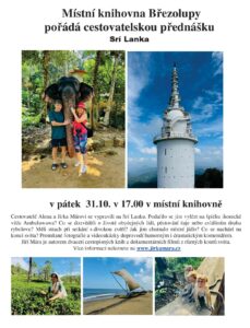 Místní knihovna Březolupy Vás zve na cestovatelskou přednášku o Srí Lance, která se uskuteční v pátek 31. října 2025 od 17:00 v knihovně.