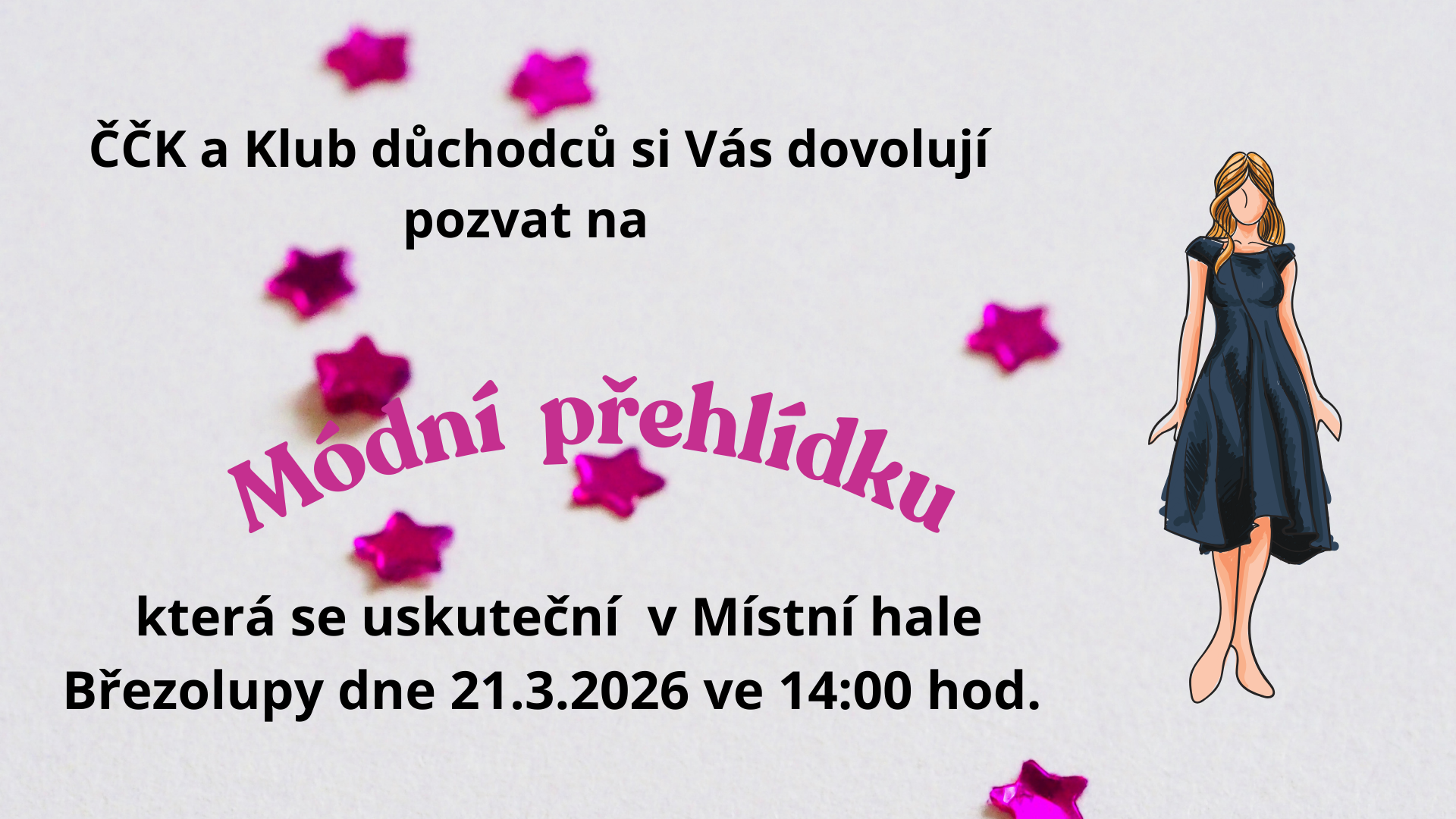 ČČK a Klub důchodců si Vás dovolují pozvat na Módní přehlídku, která se uskuteční 21.3.2026 od 14:00 v hale.